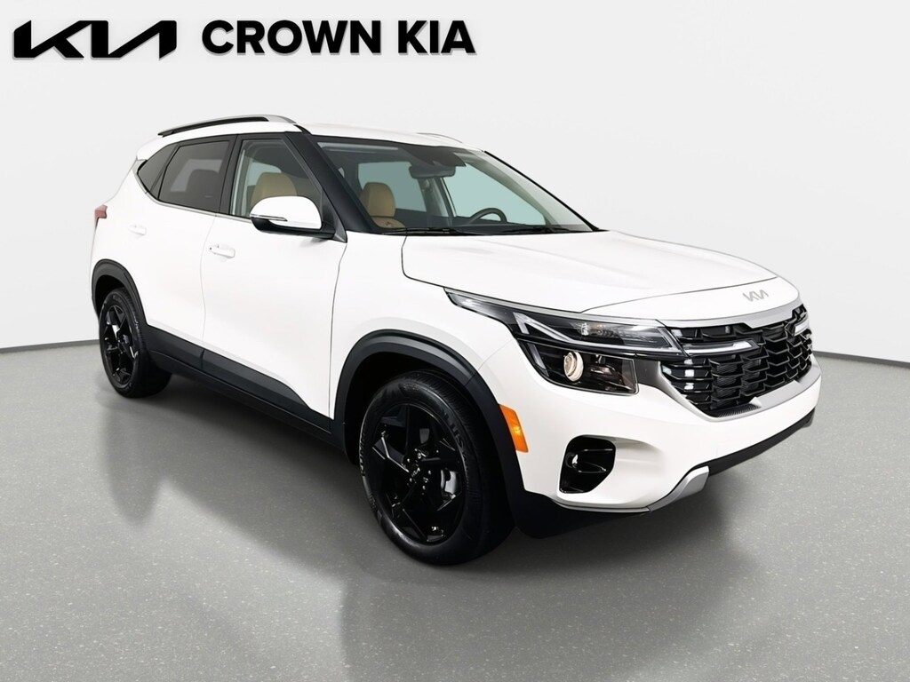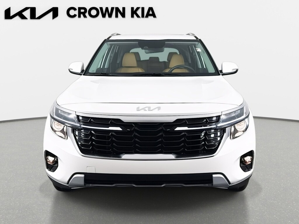 This 2026 Kia Seltos EX in Snow White Pearl features: 4-Wheel Disc Brakes, 6 Speakers, ABS brakes, Air Conditioning, Alloy wheels, AM/FM radio: SiriusXM, Apple CarPlay & Android Auto, Artificial Leather Seat Trim, Auto High-beam Headlights, Automatic temperature control, Brake assist, Bumpers: body-color, Delay-off headlights, Driver door bin, Driver vanity mirror, Dual front impact airbags, Dual front side impact airbags, Electronic Stability Control, Emergency communication system: 911 Connect, EX Sunroof Package, Exterior Parking Camera Rear, Front anti-roll bar, Front Bucket Seats, Front Center Armrest, Front fog lights, Front reading lights, Front wheel independent suspension, Fully automatic headlights, Gentle Brown Interior Color Package, Heated door mirrors, Heated Front Bucket Seats (3-Steps), Heated front seats, Illuminated entry, Leather Shift Knob, Leather steering wheel, Low tire pressure warning, Navigation System, Occupant sensing airbag, Outside temperature display, Overhead airbag, Overhead console, Panic alarm, Passenger door bin, Passenger vanity mirror, Power door mirrors, Power driver seat, Power steering, Power Sunroof, Power windows, Radio: AM/FM/HD/Satellite Display System w/Navigation, Rear seat center armrest, Rear window defroster, Rear window wiper, Remote keyless entry, Security system, Small First Aid Kit, Speed control, Speed-sensing steering, Split folding rear seat, Spoiler, Steering wheel mounted audio controls, Tachometer, Telescoping steering wheel, Tilt steering wheel, Traction control, Trip computer, Turn signal indicator mirrors, Variably intermittent wipers, Wheel: 17" Glossy Black, Wheels: 17" Alloy w/Machined Finished. Clean CARFAX. 28/34 City/Highway MPG