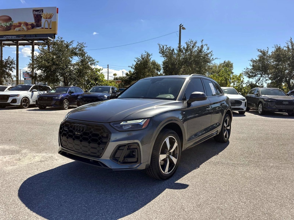 Luxury meets sport in this Audi Certified 2023 Q5 S line Premium Plus, finished in striking Daytona Gray Pearl Effect with Black Optic Package and bold 20" 5-Arm Cutter Design wheels. Powered by Audis 2.0-liter Turbocharged TFSI engine (261 HP) and quattro all-wheel drive, this Q5 delivers confidence, performance, and refinement in every mile.