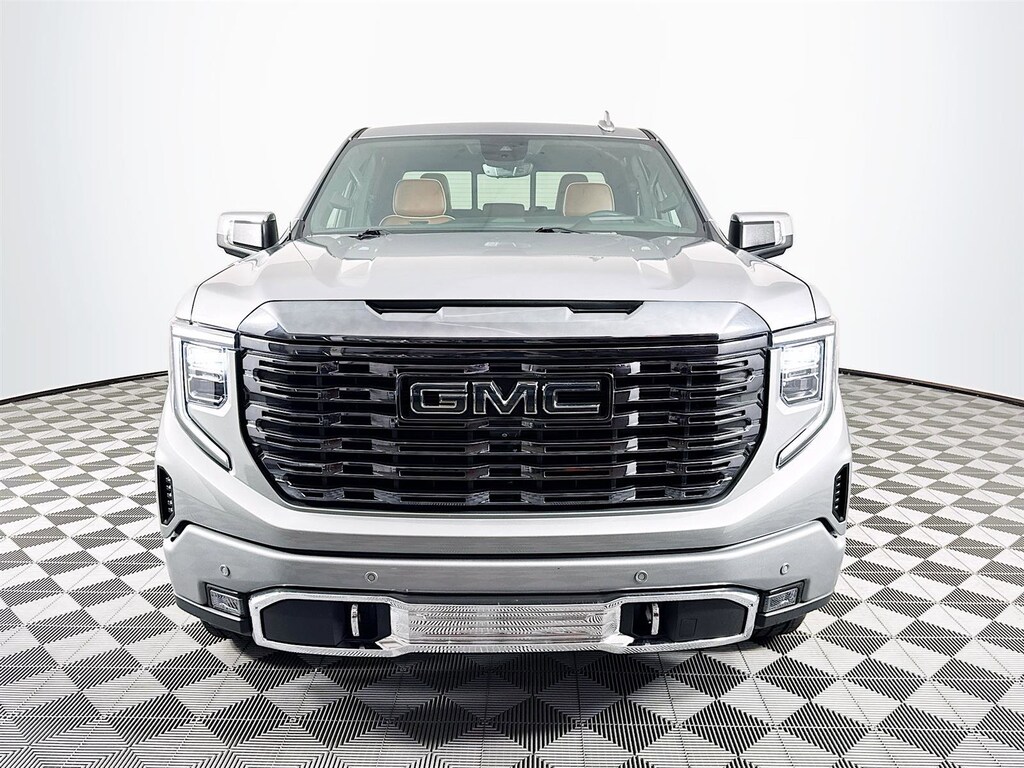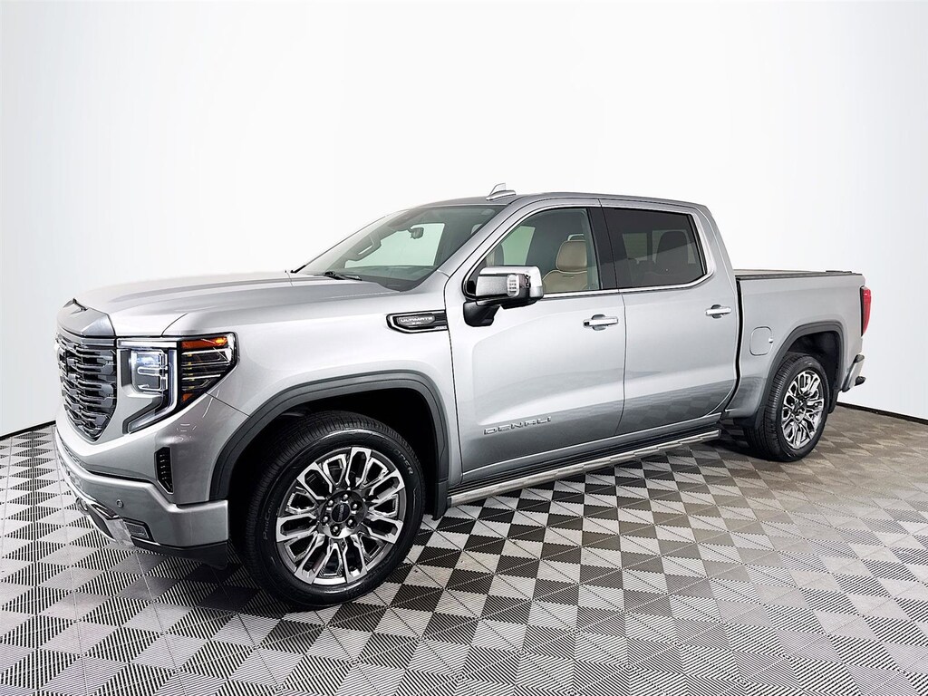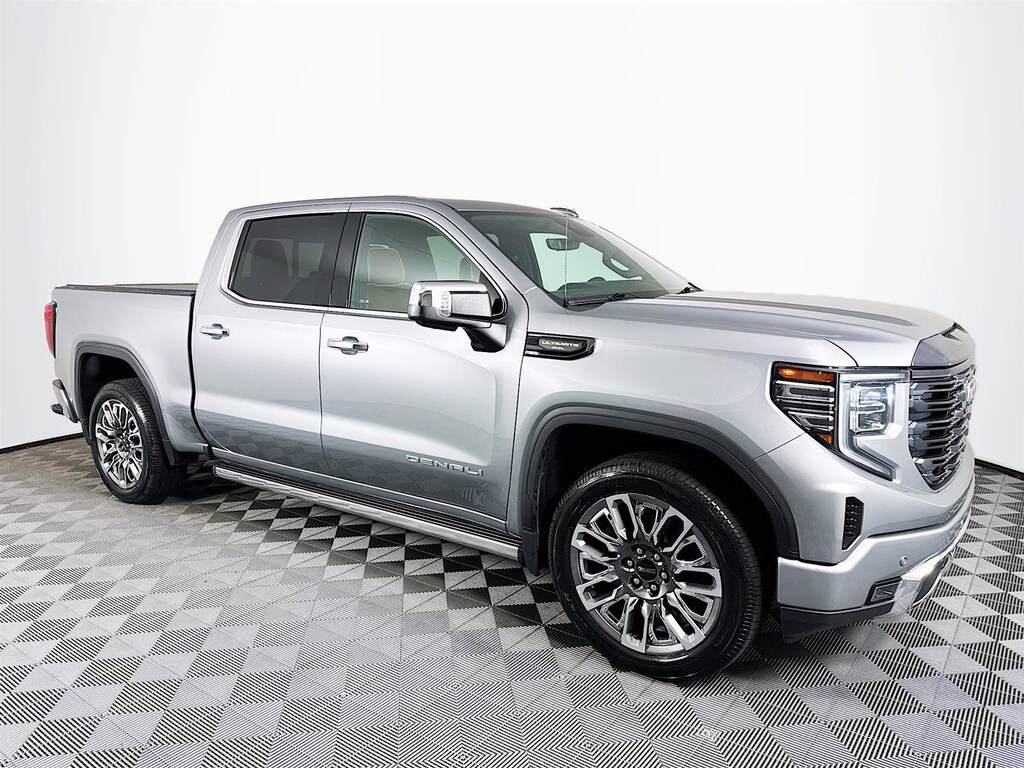 2023 GMC Sierra 1500 Denali Ultimate is for sale at Crown INEOS. Beautiful Sterling Metallic Denali with Brown leather. Loaded with auto side runners and Ultimate 12 Speakers, 120-Volt Bed Mounted Power Outlet, 120-Volt Instrument Panel Power Outlet, 16-Way Power Driver Seat Adjuster w/Lumbar, 16-Way Power Passenger Seat Adjuster w/Lumbar, 170 Amp Alternator, 2 Charge/Data USB Ports Inside Center Console, 2 Type-C Charge-Only Rear USB Ports, 2 USB Ports, 3.23 Rear Axle Ratio, 4-Wheel Disc Brakes, ABS brakes, Adaptive suspension, Air Conditioning, Alloy wheels, AM/FM radio, Apple CarPlay/Android Auto, Auto High-beam Headlights, Auto-dimming door mirrors, Auto-dimming Rear-View mirror, Auto-Locking Rear Differential, Automatic Emergency Braking, Automatic temperature control, Bed View Camera, Bose Premium Series w/12-Speaker System, Brake assist, Buckle to Drive, Bumpers: body-color, Cat-Back Performance Exhaust (LPO), Chrome Recovery Hooks, Color-Keyed Carpeting Floor Covering, Compass, Deep-Tinted Glass, Delay-off headlights, Denali Premium Suspension w/Adaptive Ride Control, Driver door bin, Driver Memory, Driver vanity mirror, Dual front impact airbags, Dual front side impact airbags, Electric Rear-Window Defogger, Electrical Steering Column Lock, Electronic Stability Control, Emergency communication system: OnStar and GMC connected services capable, Enhanced Automatic Emergency Braking, Floor-Mounted Center Console, Following Distance Indicator, Forward Collision Alert, Front anti-roll bar, Front Bucket Seats, Front Center Armrest, Front dual zone A/C, Front fog lights, Front Pedestrian Braking, Front Rainsensing Wipers, Front reading lights, Front wheel independent suspension, Full Grain Leather Seat Trim, Fully automatic headlights, Garage door transmitter, Genuine wood console insert, Genuine wood dashboard insert, Genuine wood door panel insert, GMC Connected Access Capable, HD Surround Vision, Heads-Up Display, Heated 2nd Row Outboard Seats, Heated door mirrors, Heated Driver & Front Outboard Passenger Seating, Heated front seats, Heated rear seats, Heated steering wheel, Heavy-Duty Air Filter, Hill Descent Control, Hitch Guidance, Hitch Guidance w/Hitch View, Illuminated entry, In-Vehicle Trailering App, Integrated Trailer Brake Controller, IntelliBeam Automatic High Beam On/Off, Keyless Open & Start, Lane Keep Assist w/Lane Departure Warning, LED Cargo Area Lighting, Low tire pressure warning, Memory seat, Multicolor 15" Diagonal Head-Up Display, MultiPro Audio System by Kicker (LPO), Navigation System, Not Equipped w/Steering Column Lock, Occupant sensing airbag, OnStar & GMC Connected Services Capable, Outside temperature display, Overhead airbag, Overhead console, Panic alarm, Passenger door bin, Passenger vanity mirror, Perimeter Lighting, Power Door Locks, Power door mirrors, Power driver seat, Power Front Passenger Windows w/Express Up/Down, Power Front Windows w/Driver Express Up/Down, Power moonroof, Power passenger seat, Power Rake & Telescoping Steering Column, Power Rear Windows w/Express Down, Power Sliding Rear Window w/Rear Defogger, Power steering, Power Sunroof, Power windows, Preferred Equipment Group 5SB, Premium audio system: GMC Infotainment System, Push Button Start, Radio data system, Radio: Premium GMC Infotainment Audio System, Rain sensing wipers, Rear Cross controls, Super Cruise, Tachometer, Telescoping steering wheel, Theft Deterrent System (Unauthorized Entry), Tilt steering wheel, Traction control, Trailer Camera Provisions, Trailer Side Blind Zone Alert, Trailer Tire Pressure Monitor System, Trailering Package, Trip computer, Ultrasonic Front & Rear Park Ass