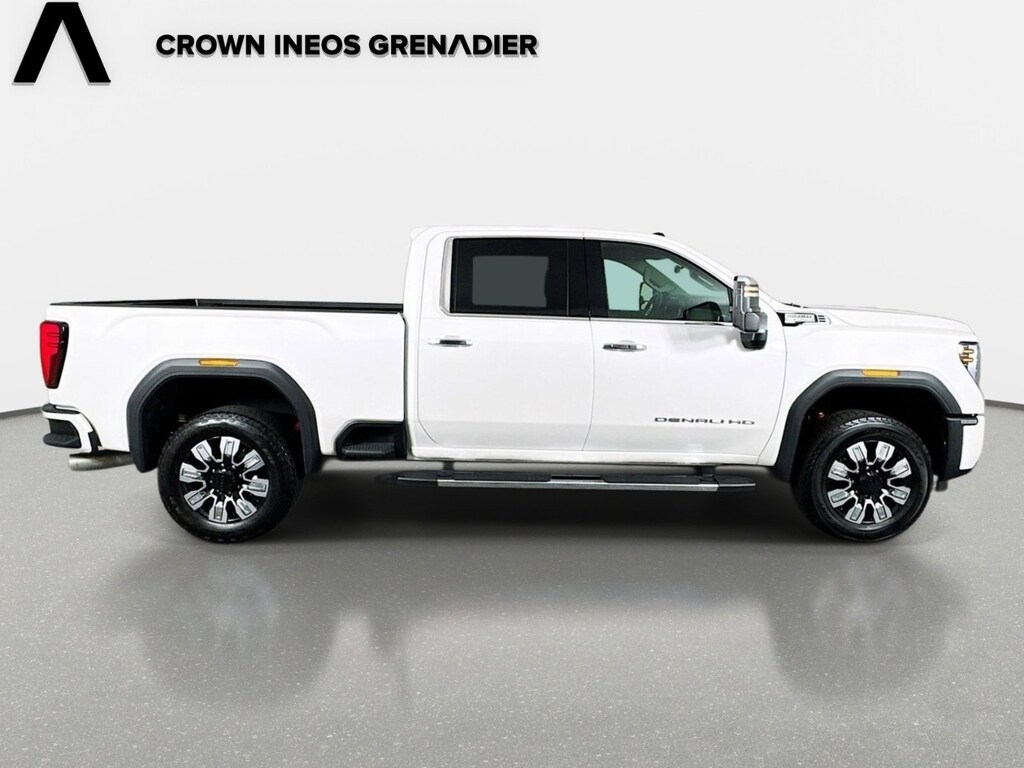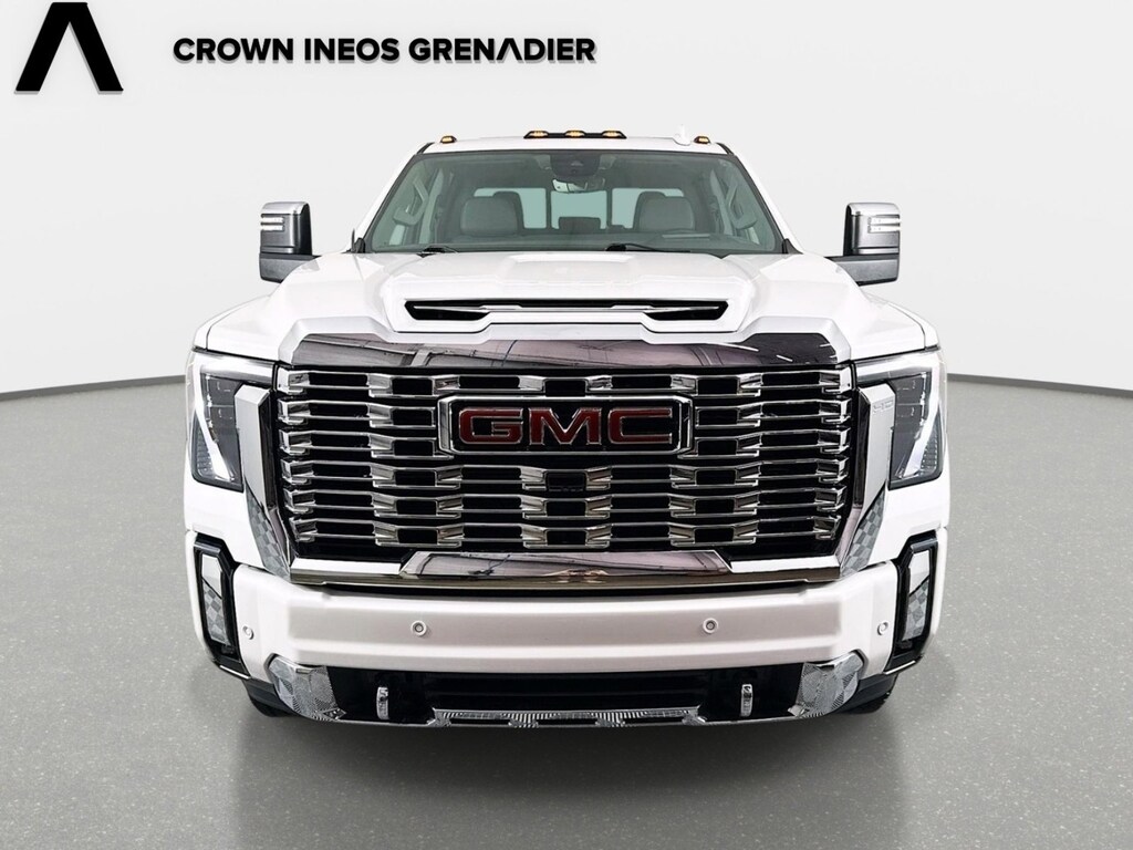 2025 GMC Sierra 2500HD Denali White Frost Tricoat Denali 12-Way Power Driver Seat Adjuster w/Lumbar, 12-Way Power Passenger Seat Adjuster w/Lumbar, 120-Volt Bed Mounted Power Outlet, 120-Volt Instrument Panel Power Outlet, 2 Charge-Only Rear USB Ports, 2 Charge/Data USB Ports Inside Center Console, 2 USB Ports, 2-Speed Active Transfer Case, 220-Amp Alternator, 4-Wheel Disc Brakes, 7 Speakers, ABS brakes, Air Conditioning, Alloy wheels, AM/FM radio: SiriusXM with 360L, Apple CarPlay/Android Auto, Auto High-beam Headlights, Auto-dimming door mirrors, Auto-dimming Rear-View mirror, Automatic Emergency Braking, Automatic temperature control, Bed View Camera w/2 Trailer Camera Provisions, Bose Premium 7-Speaker Sound System, Brake assist, Buckle to Drive, Bumpers: body-color, Compass, Deep-Tinted Glass, Delay-off headlights, Denali Reserve Package, Driver door bin, Driver Memory, Driver vanity mirror, Dual front impact airbags, Dual front side impact airbags, Electric Rear-Window Defogger, Electronic Stability Control, Emergency communication system: OnStar, Engine Block Heater, Exhaust Brake, Floor-Mounted Center Console, Following Distance Indicator, Forge Perforated Leather-Appointed Front Seat Trim, Forward Collision Alert, Front anti-roll bar, Front Bucket Seats, Front Center Armrest, Front dual zone A/C, Front fog lights, Front Pedestrian Braking, Front Rain-Sensing Wipers, Front reading lights, Front wheel independent suspension, Fully automatic headlights, Garage door transmitter, Genuine wood dashboard insert, Genuine wood door panel insert, Gooseneck/5th Wheel Prep Package, HD Surround Vision, Heated 2nd Row Outboard Seats, Heated door mirrors, Heated Driver & Front Outboard Passenger Seats, Heated front seats, Heated rear seats, Heated steering wheel, Heavy-Duty 80 Amp Battery, Hill Descent Control, Hitch Guidance w/Hitch View, Illuminated entry, In-Vehicle Trailering System App, Inside Rearview Auto-Dimming Rear Camera Mirror, IntelliBeam Automatic High Beam On/Off, Keyless Open & Start, Lane Departure Warning System, LED Cargo Area Lighting, LED Smoked Amber Roof Marker Lamps, Low tire pressure warning, Manual Tilt-Wheel/Telescoping Steering Column, Memory seat, Multicolor 15" Diagonal Head-Up Display, Occupant sensing airbag, Off-Road Suspension, OnStar Services Capable, Outside temperature display, Overhead airbag, Overhead console, Panic alarm, Passenger door bin, Passenger vanity mirror, Pickup Box, Polished Exhaust Tip, Power door mirrors, Power driver seat, Power Front Passenger Windows w/Express Up/Down, Power passenger seat, Power Sliding Rear Window w/Defogger, Power steering, Power Sunroof, Power windows, Preferred Equipment Group 5SA, Push Button Start, Radio: AM/FM w/Premium GMC Infotainment System, Rain sensing wipers, Rear Cross Traffic Alert, Rear reading lights, Rear seat center armrest, Rear step bumper, Rear Wheelhouse Liners, Rear window defroster, Remote keyless entry, Remote Vehicle Starter System, Safety Alert Seat, Security system, Signature Chrome Denali Grille, SiriusXM w/360L Trial Subscription, Speed control, Speed-sensing steering, Split folding rear seat, Spray-On Pickup Bedliner w/GMC Logo, Steering Wheel Audio Controls, Steering wheel mounted audio controls, Tachometer, Technology Package, Telescoping steering wheel, Tilt steering wheel, Traction control, Trailer Cam Provisions & Trailer Viewing Software, Trailer Side Blind Zone Alert, Trip computer, Turn signal indicator mirrors, Ultrasonic Front & Rear Park Assist, Unauthorized Entry Theft-Deterrent System, Universal Home Remote, Variably intermittent wipers, Ventilated Driver & Front Passenger Seats, Ventilated front seats, Voltmeter, Wheels: 20" Ultra Bright Machined, Winter Grille Cover, Wireless Charging, Wireless Phone Projection, X31 Off-Road Package.