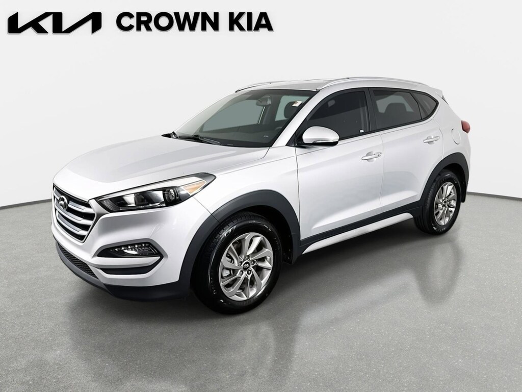 This 2018 Hyundai Tucson SEL Plus in Molten Silver features: 17" x 7.0J Alloy Wheels, 4-Wheel Disc Brakes, 8 Speakers, ABS brakes, Air Conditioning, Alloy wheels, AM/FM radio: SiriusXM, Apple CarPlay & Android Auto, Auto-dimming Rear-View mirror, Automatic temperature control, Axle Ratio: 3.51, Brake assist, Bumpers: body-color, Cargo Cover, Cargo Net, Cargo Tray, Carpeted Floor Mats, Compass, Delay-off headlights, Driver door bin, Driver vanity mirror, Dual front impact airbags, Dual front side impact airbags, Electronic Stability Control, Emergency communication system: Blue Link, Exterior Parking Camera Rear, Four wheel independent suspension, Front anti-roll bar, Front Bucket Seats, Front Center Armrest, Front dual zone A/C, Front fog lights, Front reading lights, Fully automatic headlights, Garage door transmitter: HomeLink, Heated door mirrors, Heated Front Bucket Seats, Heated front seats, Illuminated entry, Leather Seat Trim, Leather Shift Knob, Low tire pressure warning, Mudguards, Navigation System, Occupant sensing airbag, Option Group 01, Outside temperature display, Overhead airbag, Overhead console, Panic alarm, Passenger door bin, Passenger vanity mirror, Power door mirrors, Power driver seat, Power passenger seat, Power steering, Power windows, Radio: AM/FM/HD Radio/MP3/Navigation Audio System, Rear anti-roll bar, Rear seat center armrest, Rear window defroster, Rear window wiper, Remote keyless entry, Roof rack: rails only, Security system, Speed control, Speed-sensing steering, Split folding rear seat, Spoiler, Steering wheel mounted audio controls, Tachometer, Telescoping steering wheel, Tilt steering wheel, Traction control, Trip computer, Turn signal indicator mirrors, Variably intermittent wipers. Clean CARFAX. 23/30 City/Highway MPG