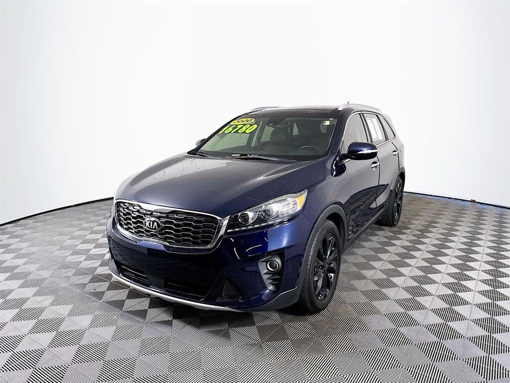 This 2020 Kia Sorento EX in Imperial Blue features: Kia CPO Lite Certified, 3.32 Axle Ratio, 3rd row seats: split-bench, 4-Wheel Disc Brakes, 6 Speakers, ABS brakes, Air Conditioning, Alloy wheels, AM/FM radio, Apple CarPlay & Android Auto, Auto Dimming Mirror w/Homelink & Compass, Automatic temperature control, Brake assist, Bumpers: body-color, Cargo Cover, Cargo Mat (7 Seat), Carpeted Floor Mats (7-Passenger), Delay-off headlights, Driver door bin, Driver vanity mirror, Dual front impact airbags, Dual front side impact airbags, Electronic Stability Control, Exterior Parking Camera Rear, Four wheel independent suspension, Front anti-roll bar, Front Bucket Seats, Front Center Armrest, Front dual zone A/C, Front fog lights, Front reading lights, Fully automatic headlights, Heated door mirrors, Heated Front Bucket Seats, Heated front seats, Illuminated entry, Leather Seat Trim, Leather Shift Knob, Leather steering wheel, Low tire pressure warning, Occupant sensing airbag, Outside temperature display, Overhead airbag, Overhead console, Panic alarm, Passenger door bin, Passenger vanity mirror, Power door mirrors, Power driver seat, Power Liftgate, Power moonroof, Power steering, Power windows, Radio data system, Radio: AM/FM/MP3 Audio System, Rear air conditioning, Rear anti-roll bar, Rear reading lights, Rear seat center armrest, Rear window defroster, Rear window wiper, Remote keyless entry, Roof rack: rails only, Security system, Speed control, Speed-sensing steering, Split folding rear seat, Spoiler, Steering wheel mounted audio controls, Tachometer, Telescoping steering wheel, Tilt steering wheel, Traction control, Trip computer, Turn signal indicator mirrors, Variably intermittent wipers, Wheels: 19" x 7.5" Sport Black Alloy. Certified. 19/26 City/Highway MPG