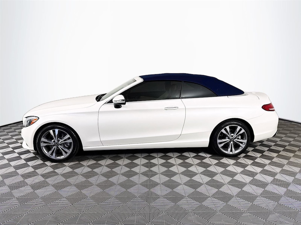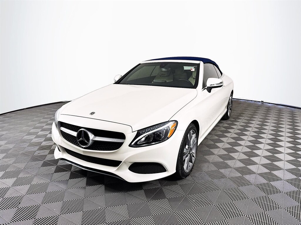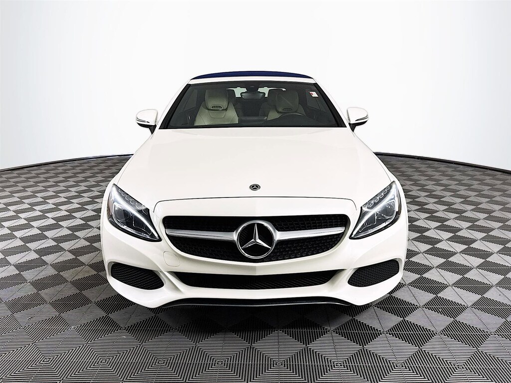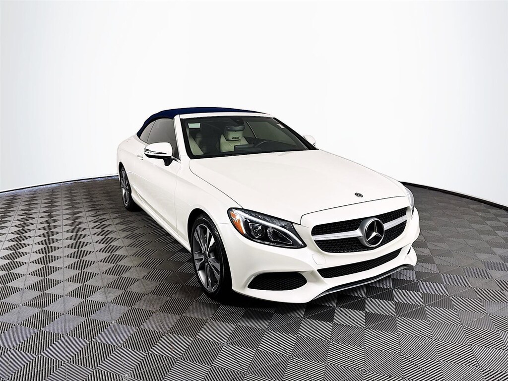 This 2018 Mercedes-Benz C-Class C 300 in Polar White features: **CROWN CONFIDENCE PLAN USED CAR GUARANTEE Certified, 4-Way Lumbar Support, 4-Wheel Disc Brakes, 5 Speakers, ABS brakes, Air Conditioning, Alloy wheels, AM/FM radio, Anti-whiplash front head restraints, Auto tilt-away steering wheel, Auto-dimming door mirrors, Auto-dimming Rear-View mirror, Automatic temperature control, Brake assist, Bumpers: body-color, CD player, Child-Seat-Sensing Airbag, Compass, Convertible roof lining, Convertible roof wind blocker, Delay-off headlights, Driver door bin, Driver vanity mirror, Dual front impact airbags, Dual front side impact airbags, Electronic Stability Control, Emergency communication system: mbrace2, Exterior Parking Camera Rear, Four wheel independent suspension, Front anti-roll bar, Front Bucket Seats, Front Center Armrest, Front dual zone A/C, Front reading lights, Fully automatic headlights, Garage door transmitter: Homelink, Genuine wood console insert, Genuine wood door panel insert, Glass rear window, Head restraints memory, Heated door mirrors, Heated Front Seats, Heated front seats, Illuminated entry, Integrated roll-over protection, Knee airbag, Low tire pressure warning, MB-Tex Upholstery, Memory seat, Occupant sensing airbag, Outside temperature display, Overhead airbag, Overhead console, Panic alarm, Passenger door bin, Passenger vanity mirror, Power adjustable front head restraints, Power convertible roof, Power door mirrors, Power driver seat, Power Driver Seat & Steering Column w/Memory, Power passenger seat, Power steering, Power windows, Premium audio system: COMAND®, Radio data system, Radio: Audio 20 - Radio w/Bluetooth, Rain sensing wipers, Rear anti-roll bar, Rear fog lights, Rear side impact airbag, Rear window defroster, Remote keyless entry, Security system, Single CD Player, Speed control, Speed-sensing steering, Split folding rear seat, Steering wheel memory, Steering wheel mounted audio controls, Tachometer, Telescoping steering wheel, Tilt steering wheel, Traction control, Trip computer, Turn signal indicator mirrors, Variably intermittent wipers, Weather band radio, Wheels: 18" Twin 5-Spoke. Certified. Clean CARFAX. Odometer is 27682 miles below market average! Priced below KBB Fair Purchase Price! 22/29 City/Highway MPG