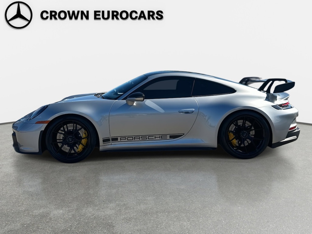 This 2022 Porsche 911 GT3 (992) is finished in GT-Silver Metallic over a Leather/Race-Tex interior in Black with GT Silver stitching and shows 11,707 miles. This example carries $43,520 in factory-installed options, including Porsche Ceramic Composite Brakes, a carbon fiber roof, front axle lift, and the 6-speed GT Sport manual transmission. The car carries a clean Carfax, was previously Porsche Certified Pre-Owned, and a DME report is on hand.