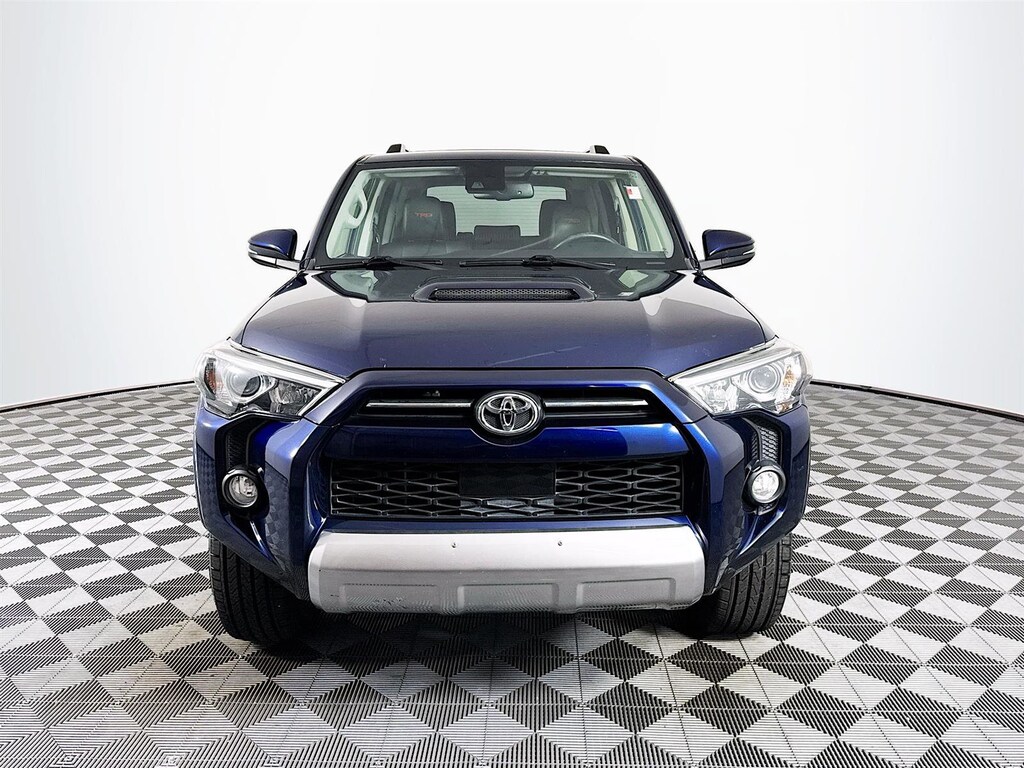 This 2020 Toyota 4Runner TRD Off-Road Premium in Nautical Blue Metallic features: **CROWN CONFIDENCE PLAN USED CAR GUARANTEE Certified, 4WD, Black/Graphite w/Leather Seat Trim, 3.727 Axle Ratio, 4-Wheel Disc Brakes, 8 Speakers, ABS brakes, Air Conditioning, Alloy wheels, AM/FM radio: SiriusXM, Anti-whiplash front head restraints, Apple CarPlay/Android Auto, Auto High-beam Headlights, Auto-dimming Rear-View mirror, Black Roof Rails, Body Color Heated Mirrors, Brake assist, Bumpers: body-color, Compass, Driver door bin, Driver vanity mirror, Dual front impact airbags, Dual front side impact airbags, Electronic Stability Control, Emergency communication system: Safety Connect with 1-year trial, Exterior Parking Camera Rear, Front anti-roll bar, Front Bucket Seats, Front Center Armrest, Front fog lights, Front reading lights, Front wheel independent suspension, Garage Door Opener, Garage door transmitter: HomeLink, Heated door mirrors, Heated Front Bucket Seats, Heated front seats, Illuminated entry, Knee airbag, Leather Shift Knob, Low tire pressure warning, Moonroof w/Tilt Up & Slide, Occupant sensing airbag, Outside temperature display, Overhead airbag, Overhead console, Panic alarm, Passenger door bin, Passenger vanity mirror, Power door mirrors, Power driver seat, Power passenger seat, Power steering, Power windows, Radio: Premium Audio w/Dynamic Navigation, Rear anti-roll bar, Rear seat center armrest, Rear window defroster, Rear window wiper, Remote keyless entry, Roof rack: rails only, Security system, Softex Synthetic Leather Seat Trim, Speed control, Speed-sensing steering, Split folding rear seat, Spoiler, Steering wheel mounted audio controls, Tachometer, Telescoping steering wheel, Tilt steering wheel, Traction control, Trip computer, Turn signal indicator mirrors, Variably intermittent wipers, Wheels: 17" x 7.5" 7-Spoke Unique Off-Road Alloy, 4WD, Black/Graphite w/Leather Seat Trim. Certified. CARFAX One-Owner. Odometer is 14702 miles below market average!